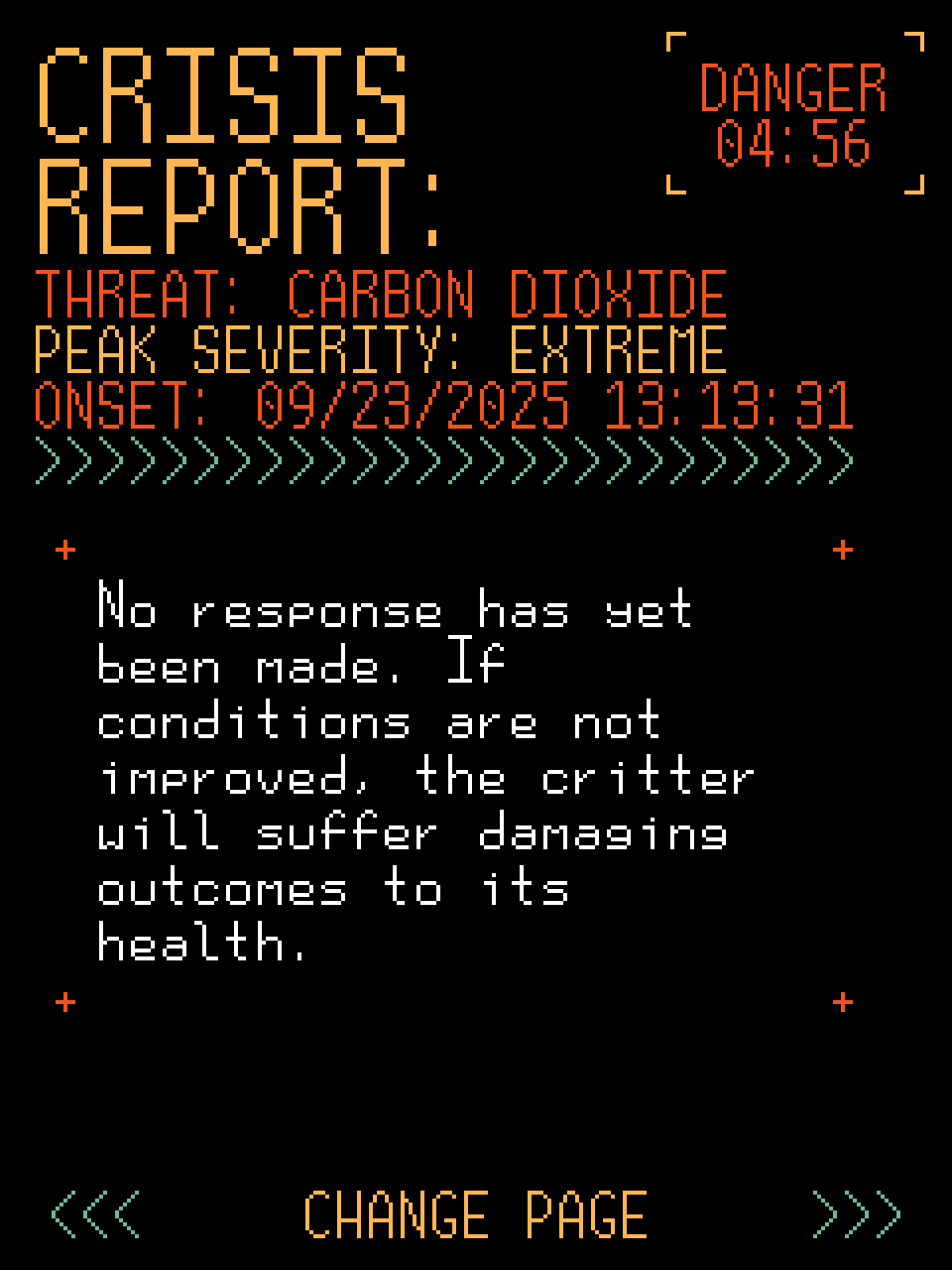 The real-life air quality that spawned the crisis will continue to affect you and, after the crisis cooldown has passed, will even continue to affect your critter.
