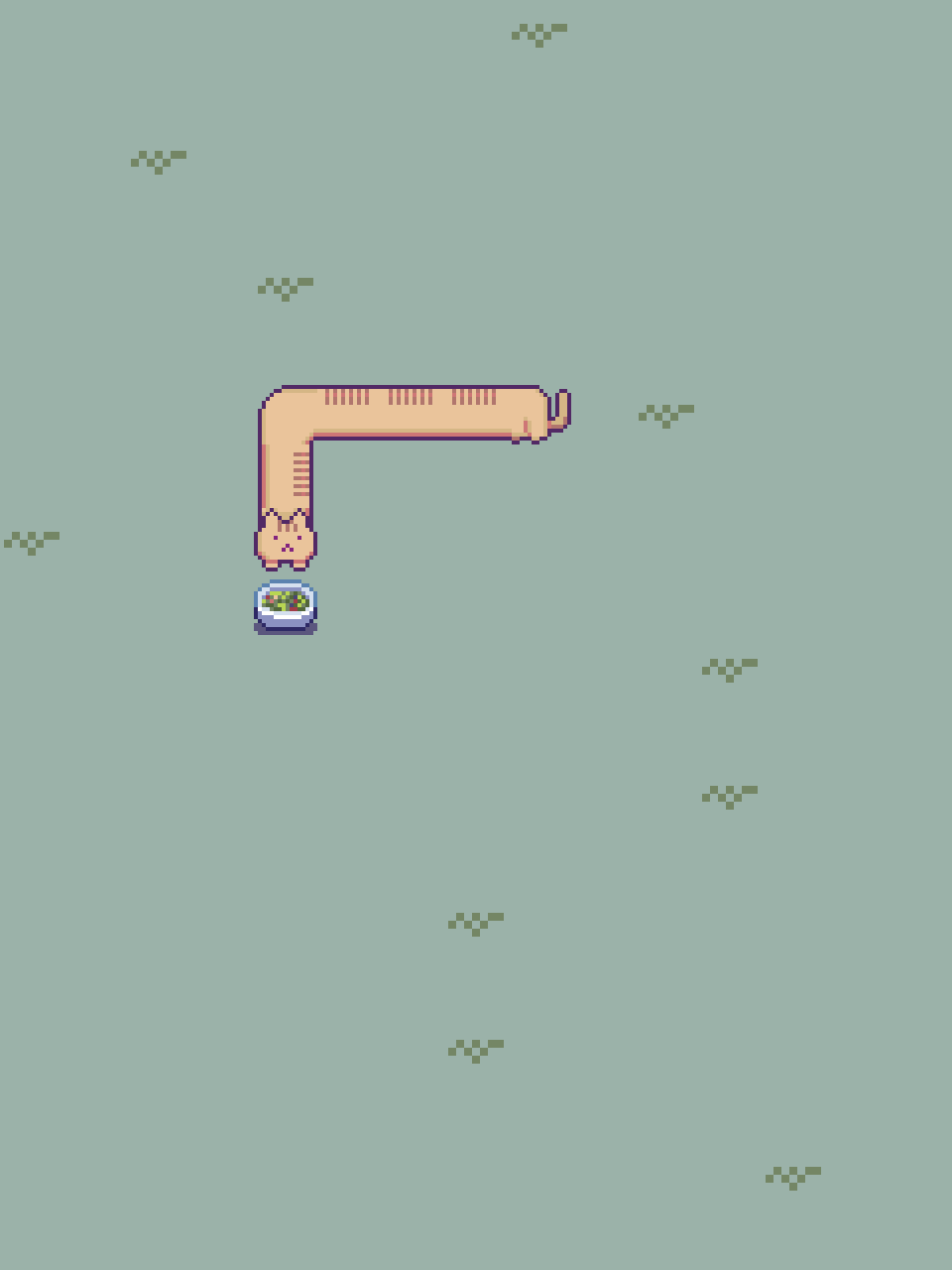 Maneuver Snackcat with the D-pad to snap up snacks and coins.Beware! If you collide with the walls or yourself, it's game over.