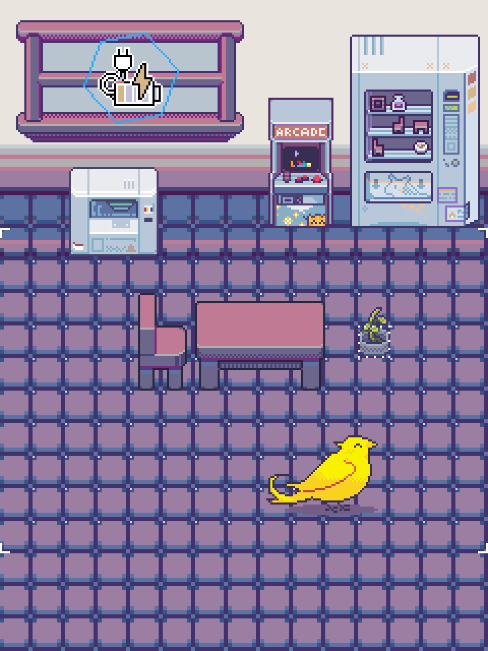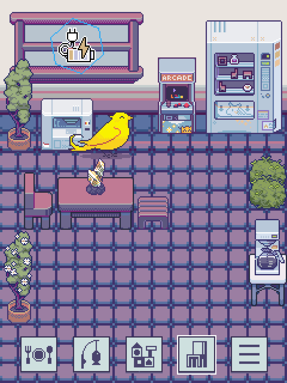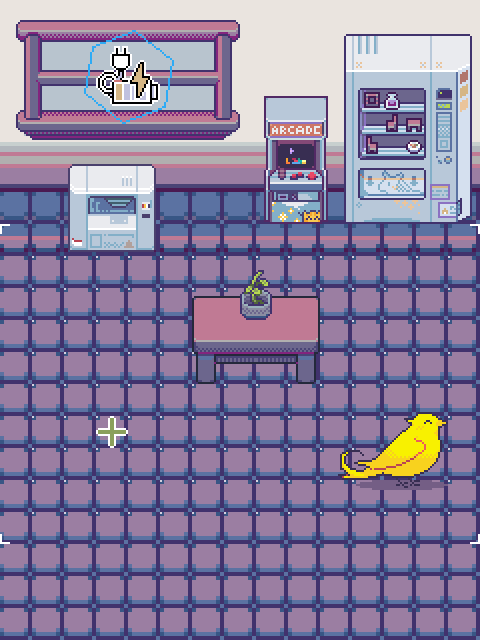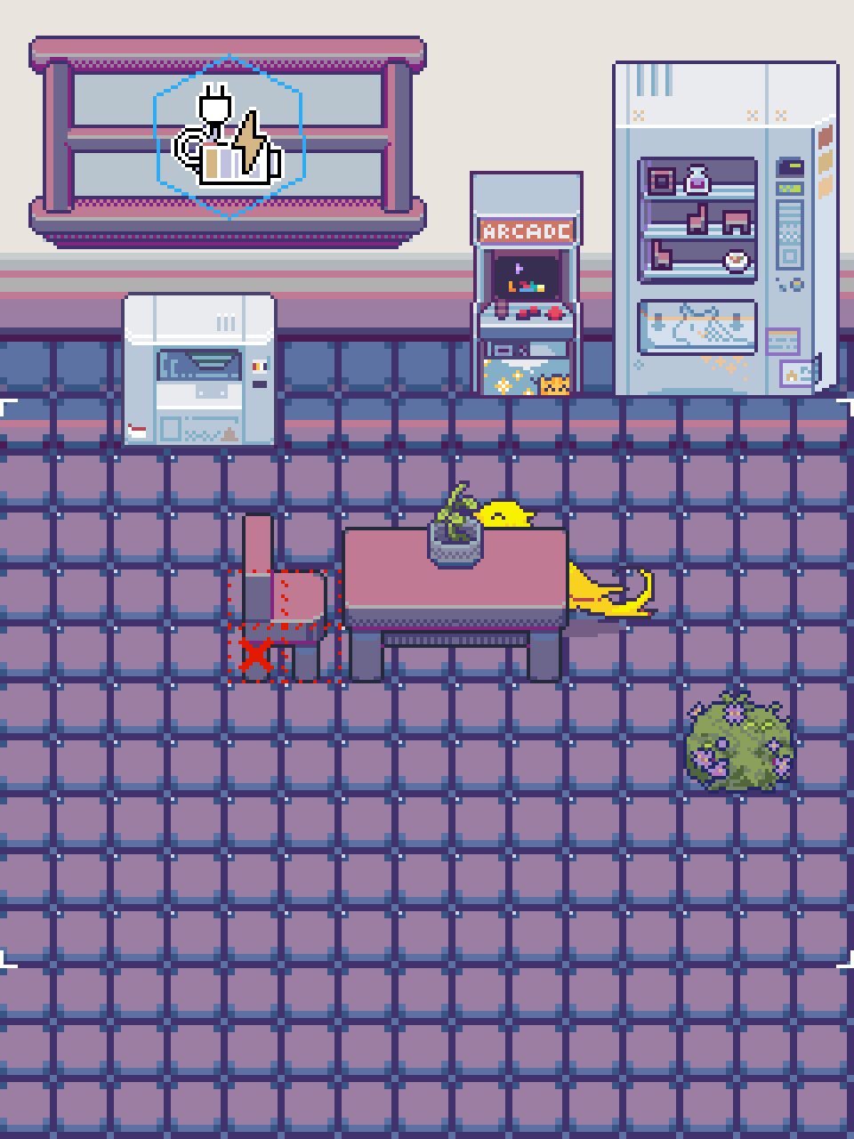 The majority of the apartment's floor space is implicitly devided into a grid of tiles. The grid is 15 tiles wide and 10 tiles tall, reaching from the top of the floor to the area above the screen buttons. Deocoration items can be placed in the grid. Some decorations also serve gameplay functions. To place decorations in the grid, one must first enter decoration mode by clicking on the screen button that sports a chair icon.