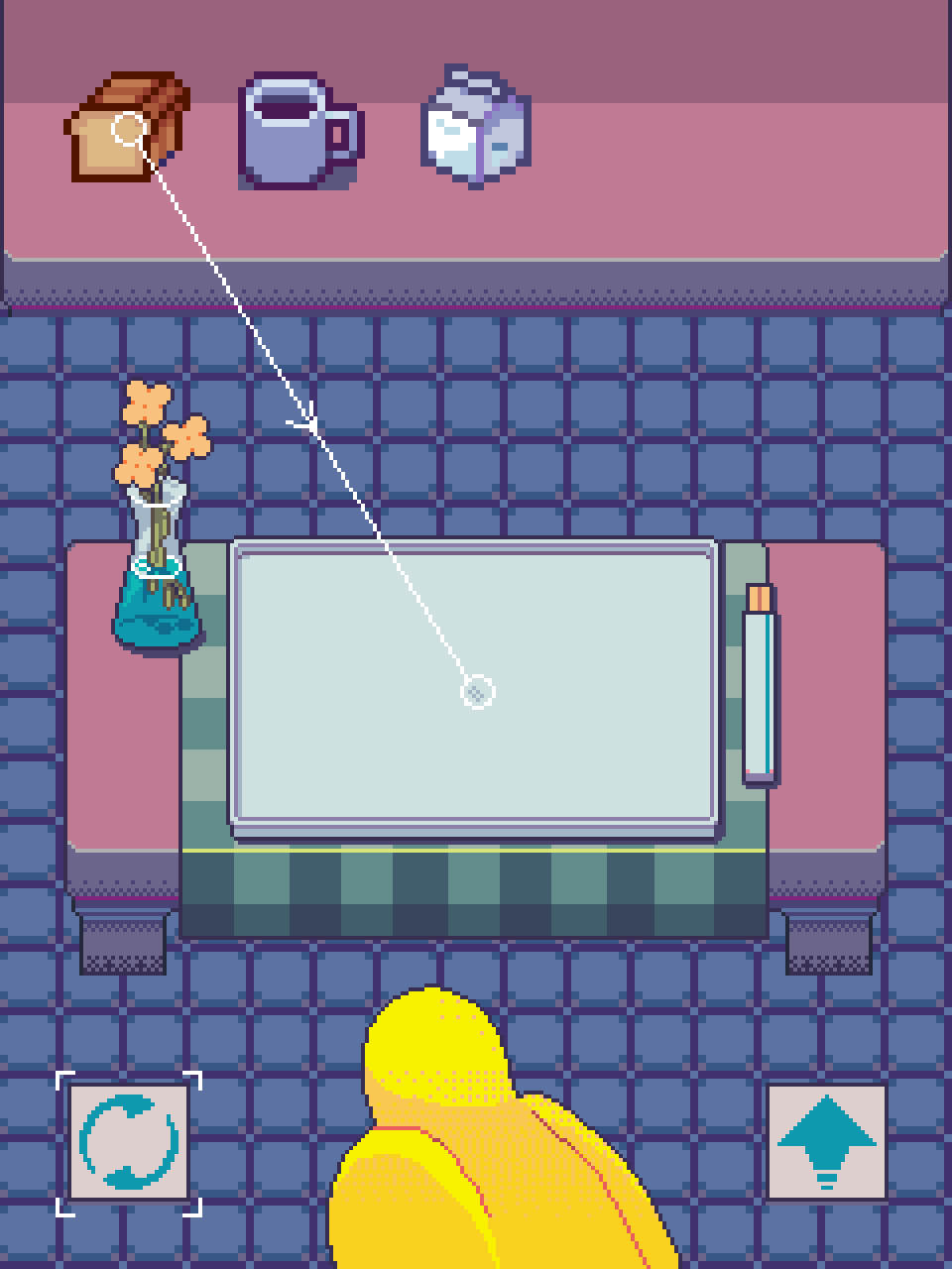 Feeding your pet nutritious and delicious meals is the main way to restore its vigour and one way to gain XP. To launch the feeding minigame, press the screen button with a table setting on it. Once the minigame is launched, tapping around the feeding area will show you some visual hints.